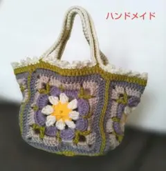 ハンドメイド グラニースクエア バッグ 裏地付き