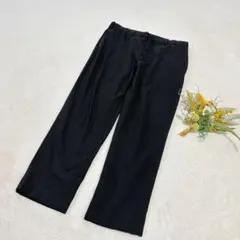 シンプルで洗練された黒のスラックス、ビジネスシーンに最適。