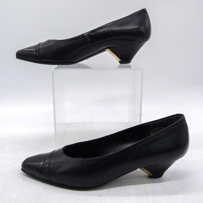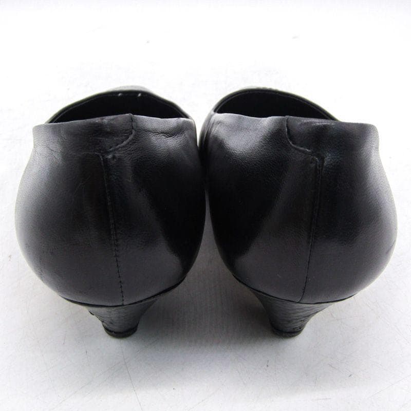 ポインテッドトゥデザインのブラックウエッジヒール。