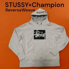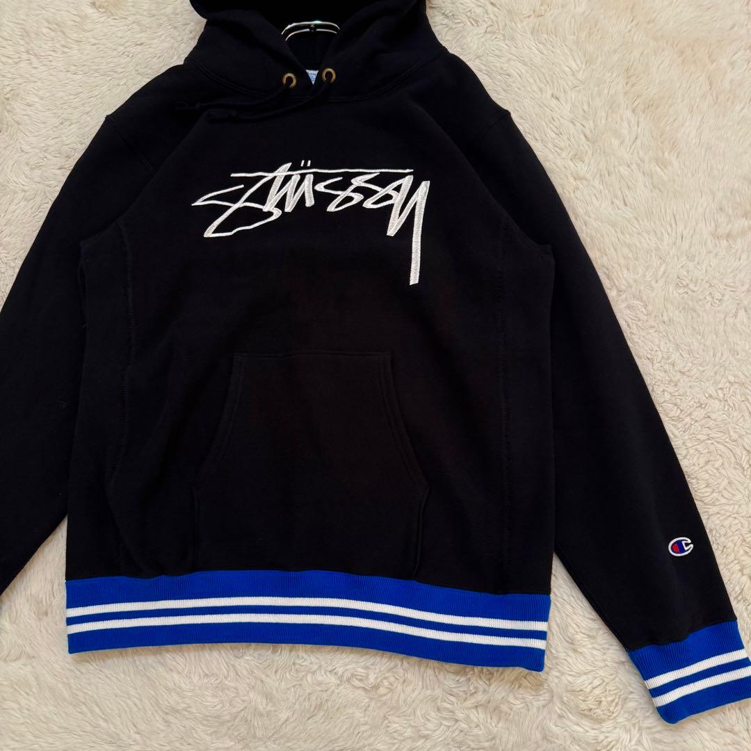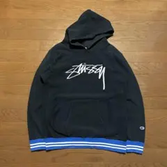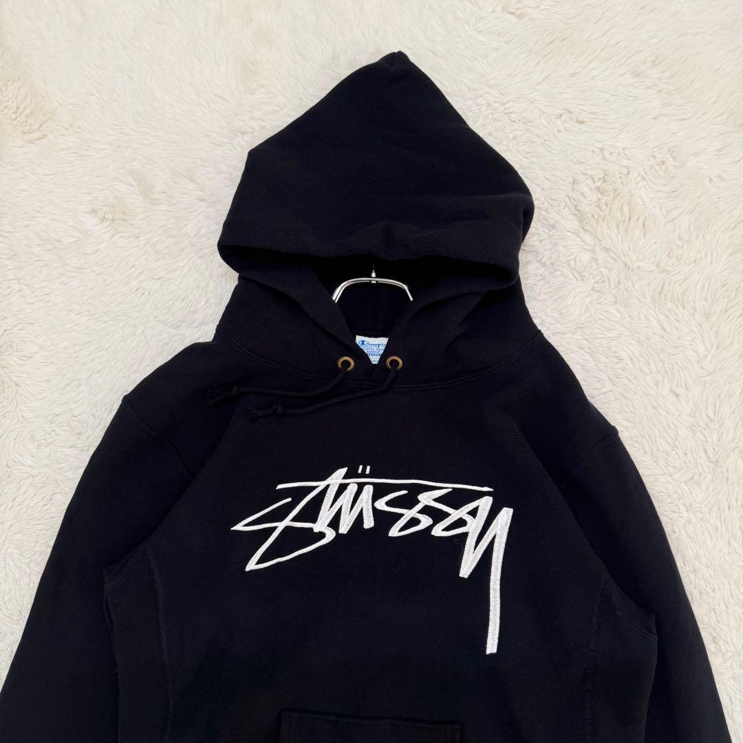 STUSSY×チャンピオン リバースウィーブ ロゴ刺繍 プルオーバーパーカー M