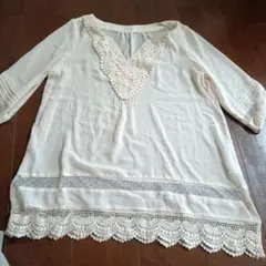 アイボリーのシャツで、軽やかな素材感が特徴です。