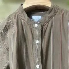 coen 水色 バンドカラー 長袖シャツ