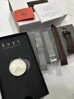Knot ピンクレザー スクエア時計 交換バンド付き