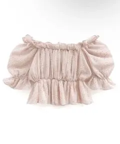 フリルとシャーリングデザインのピンクシフォンブラウス。