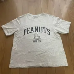 スヌーピーのキャラクターが全面にプリントされたグレーのTシャツ。
