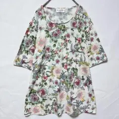 poushal サマーニット 半袖 黄緑 花柄