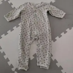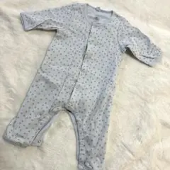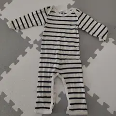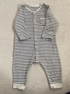 プチバトー白地にグレーのボーダー柄ロンパースです。