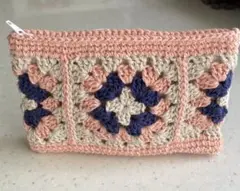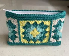 ハンドメイド グラニースクエア かぎ編み モチーフ編み ポーチ ペンケース