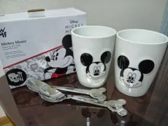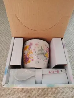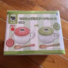 スヌーピーのイラストが描かれた赤いマグカップとスプーンのセット。