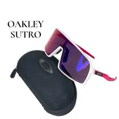 スポーツスタイルのOakleyサングラス、ミラー加工レンズ付き。鼻パッドに少し傷がついています。