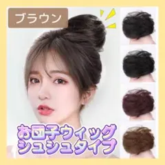 シュシュ お団子 ウィッグ ブラックブラウン つけ毛 ヘアゴム カールタイプ