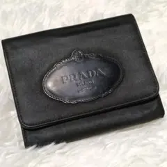 PRADA プラダ 三つ折り財布 サフィアーノ ブラック 三角ロゴ