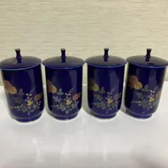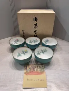 美品 オールド香蘭社 湯呑み ギンガムチェック ブルー 煎茶碗 香蘭社 6個