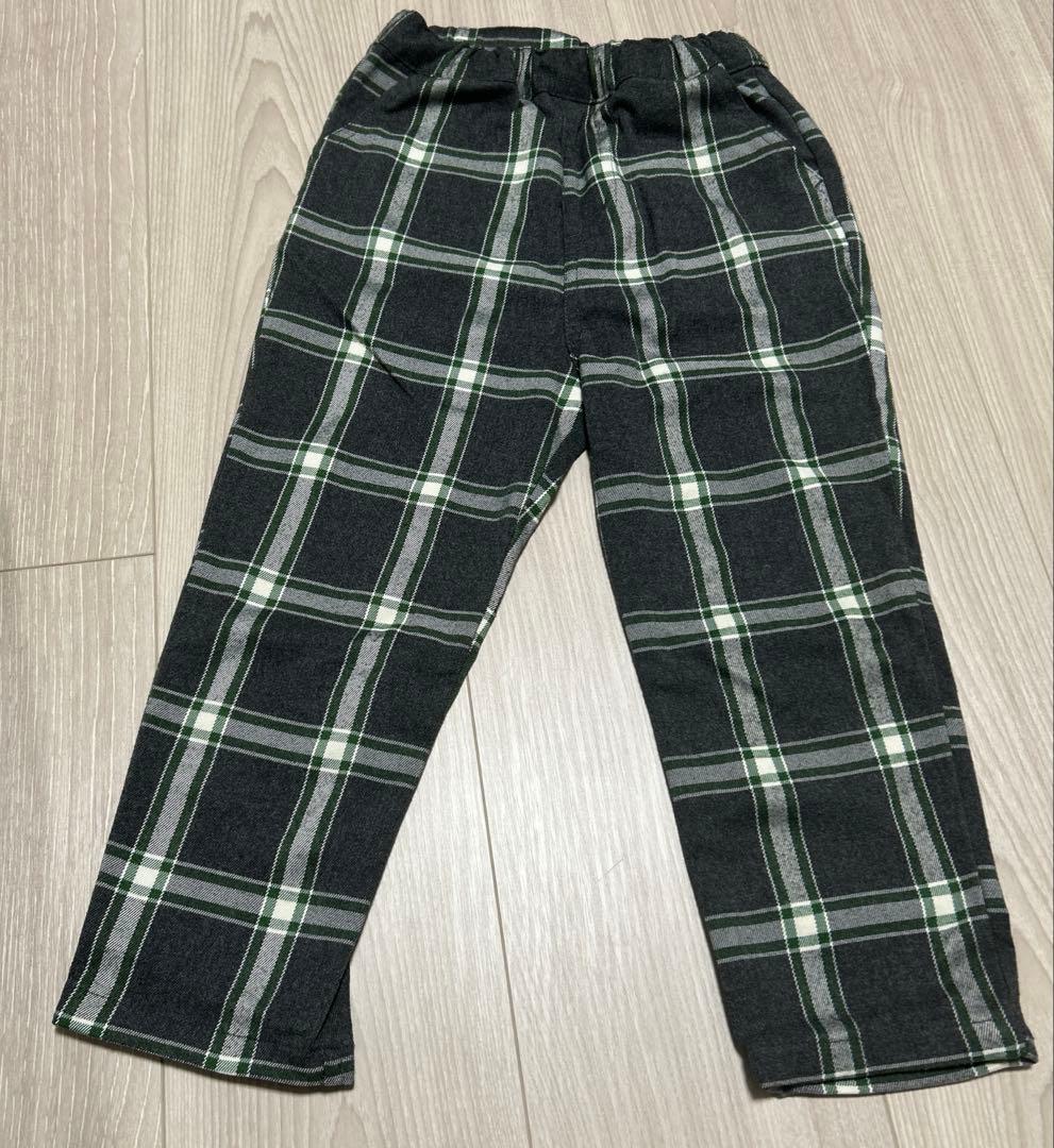 新品 プティマイン 長ズボン 110サイズ チェック柄 ネイビー 緑
