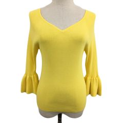 さらっとしたビスコースナイロンを使用したニットトップ。袖口に配色ラインを配しアクセントを効かせたトレンド感ある一着です。デコルテを綺麗に見せる広めのネックシルエットや体のラインをひろわず女性らしく使えるフォルムも特徴。インでもアウトでも様になり、インナー使いから一枚着まで万能に使えるお勧めのアイテムです。