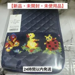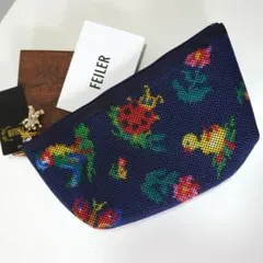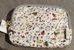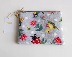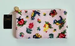 赤い花柄デザインのフリースポーチ、サテンリボン付き。