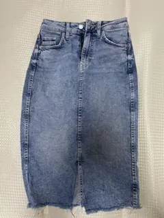 前面に飾りボタン付きの黒いタイトスカート、スタイリッシュでシンプルなデザイン。