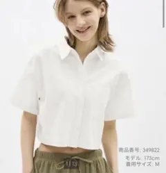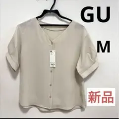 GU レースブラウス パフスリーブ フロントボタン ピンタック カーキ Lサイズ