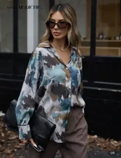 SHEIN 青いサテン長袖シャツ