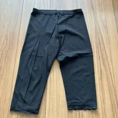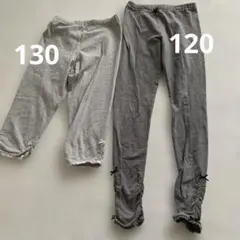 オレンジと青のストライプデザインのリブ編みレギンス。