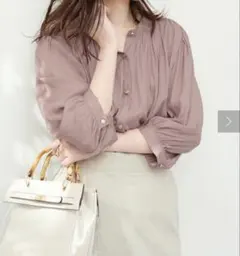 サッカー調の表面感のあるサテン素材を使用した新鮮なプルオーバーブラウスです。1枚で着映えするダブルペプラムデザインです。左側のみティアードにしたアシンメトリーなデザインで、かつペプラムディテールを施した新しいデザインです。素材に綺麗な落ち感があり膨らみすぎないので、可愛くなりすぎず、大人っぽく着こなして頂けます。