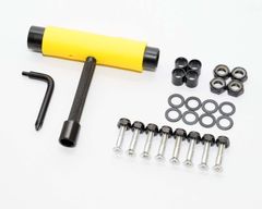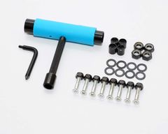 新品のスケートボード用工具です。六角、プラスのドライバー付。ドライバーはツールの裏側に収納可能。これ1個でアクセルナット、キングピンナット、ボルトナットの調整が全て可能です。収納したドライバーは中心のボタンを押すと簡単に取り出せます。