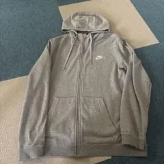 Nikeのグレーのフード付きパーカー、シンプルでスタイリッシュなデザイン。