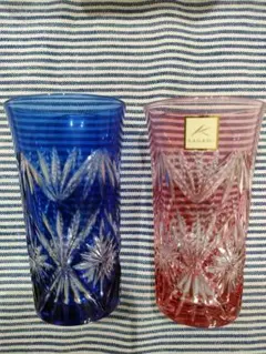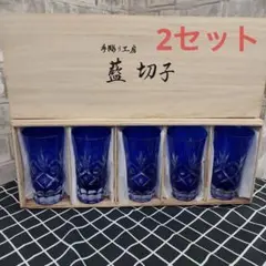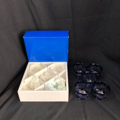コバルトブルーのカットクリスタルグラス、エレガントなデザインで高級感があります。