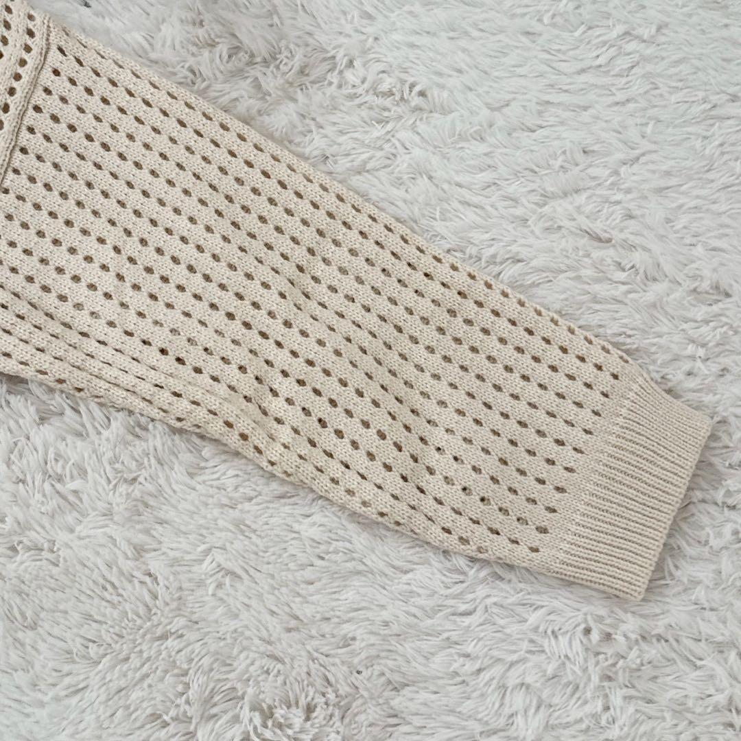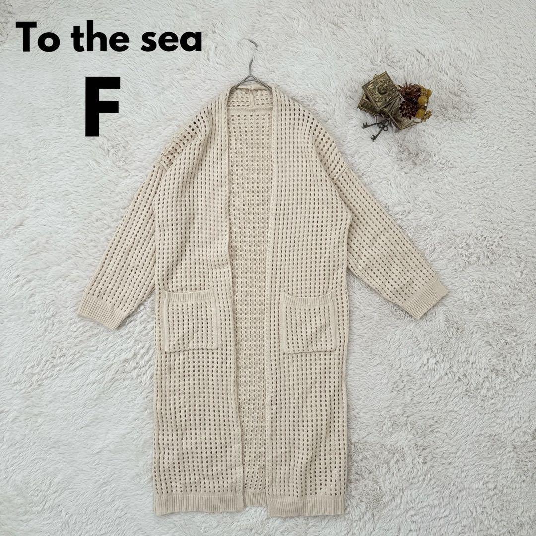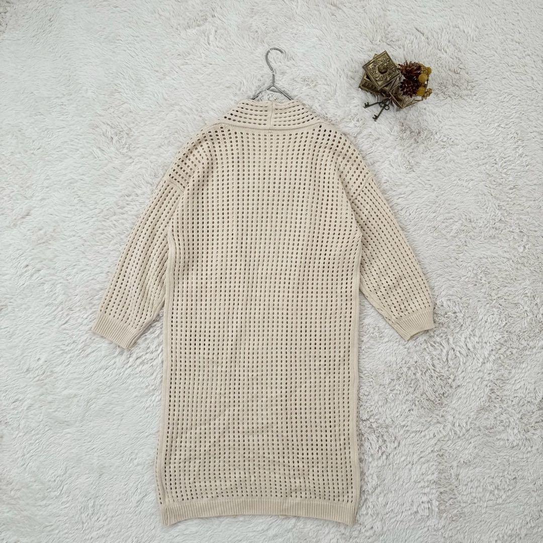【To the sea】透かし編みロングカーディガン ベージュ 体型カバー羽織り
