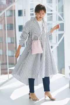 ストライプ柄 シャツワンピース 長袖