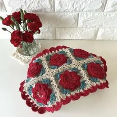 ハンドメイド 手編みマルチカバー サーモンピンク モチーフ編み