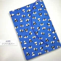 紫色の布製ブックカバー、葉と動物のデザインが特徴。