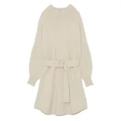 オフショルダーとウエストリボンが特徴的なカジュアルニットワンピース。