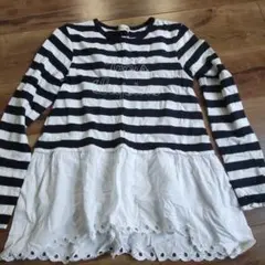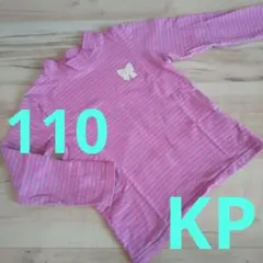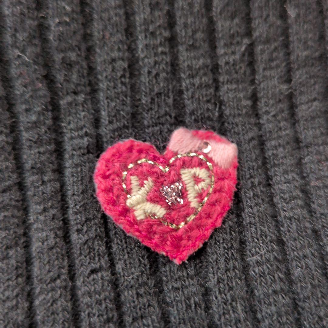 リブ編みのハイネック長袖カットソー、ハートの刺繍付き。