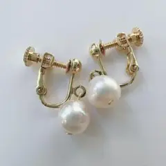 あこやパール、7ミリ前後の3珠つきピアスです。