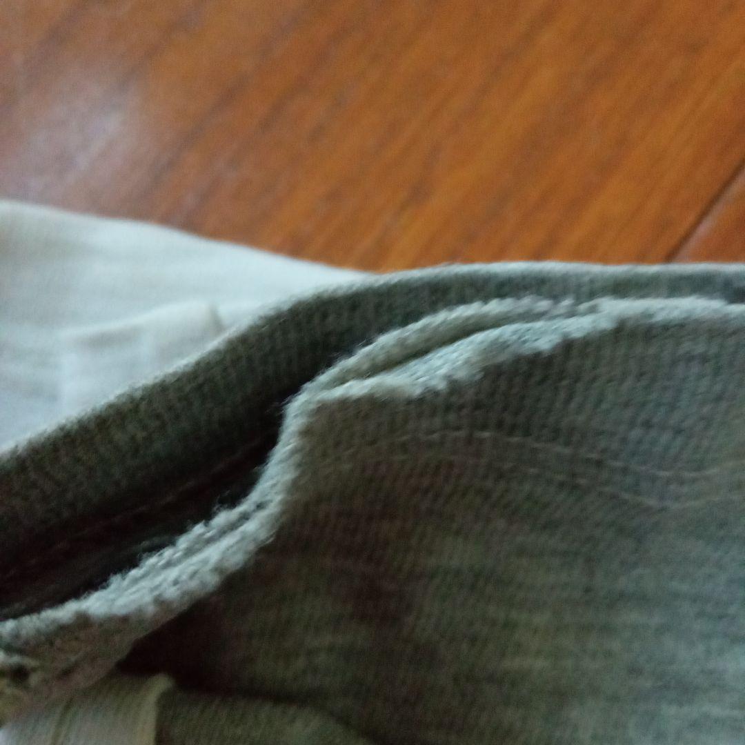商品は全体的に綺麗ですが、よく見ると汚れと穴が前面に、切れている部分が袖口にあり(写真8,9,10)