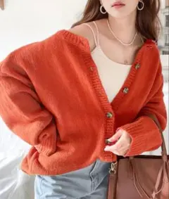 ゆったりとしたシルエットのニットカーディガンで、軽い羽織りとして長い季節使えるアイテムです。