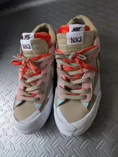 ホワイトとピンクの配色が特徴のNikeランニングシューズ。