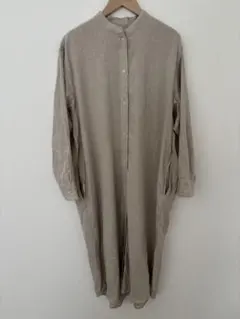 無印良品 ベージュの長袖シャツワンピース、M-Lサイズ。ポケットあり。綿100%です。