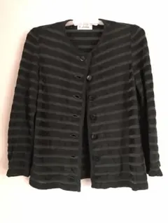 まるでアート作品のようなデザインで、普段のコーディネートに差をつける主役級のアイテムです。前ボタンはすべて付いており、袖口や裾のリブ編みもしっかりしています。
