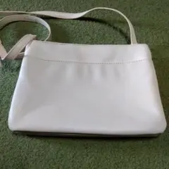 ダークグリーンのリングハンドル付きショルダーバッグ、内部にボタン留めポケットあり。