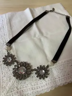 毛糸編みのあたたかなお花モチーフのネックレス。
