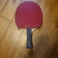 STIGA製の木製卓球ラケット、黒と赤のデザイン、使用感あり。