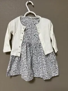 ゴールドラメのドット柄が特徴の74センチのワンピース。長袖。グレー✖️ゴールド。チャコールグレー。