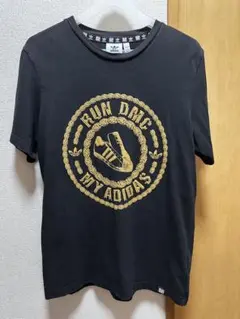ブラウンのadidas Tシャツ、ロゴとスローガンが特徴的。