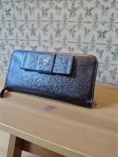 【✨美品✨】プラダ リボン 長財布 サフィアーノレザー ブラック L型