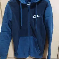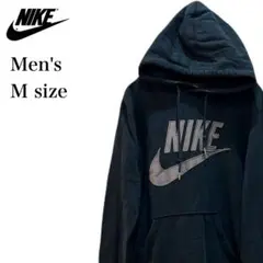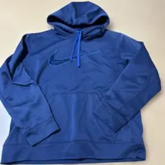 ナイキのネイビー色のMサイズパーカー、ロゴプリントデザイン
