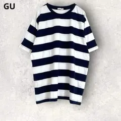 GU ジーユー リブT半袖ボーダー 細めボーダー レディース ブラック 黒 L