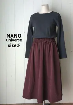 ナノユニバース 灰茶ロングワンピース F 秋冬 大人可愛い コーデュロイ 綺麗め