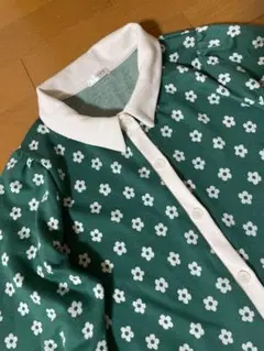 花柄デザインの青い長袖カーディガン、ボタン付きでスタイリッシュ。